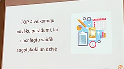 Viens no galvenajiem lekcijas tematiem bija par pašattīstības nozīmi – Rolands uzsvēra, ka, lai gūtu panākumus, ir nepieciešams ne tikai smagi strādāt, bet arī nepārtraukti pilnveidot sevi. Viņš dalījās ar praktiskām stratēģijām, kā uzlabot laika menedžmentu un kā pieņemt pārdomātus lēmumus par karjeru. Tāpat viņš deva ieteikumus, kā plānot savas finanses, lai nodrošinātu stabilu nākotni. Rolands arī ieteica grāmatas, kuras būtu vēlams izlasīt.
