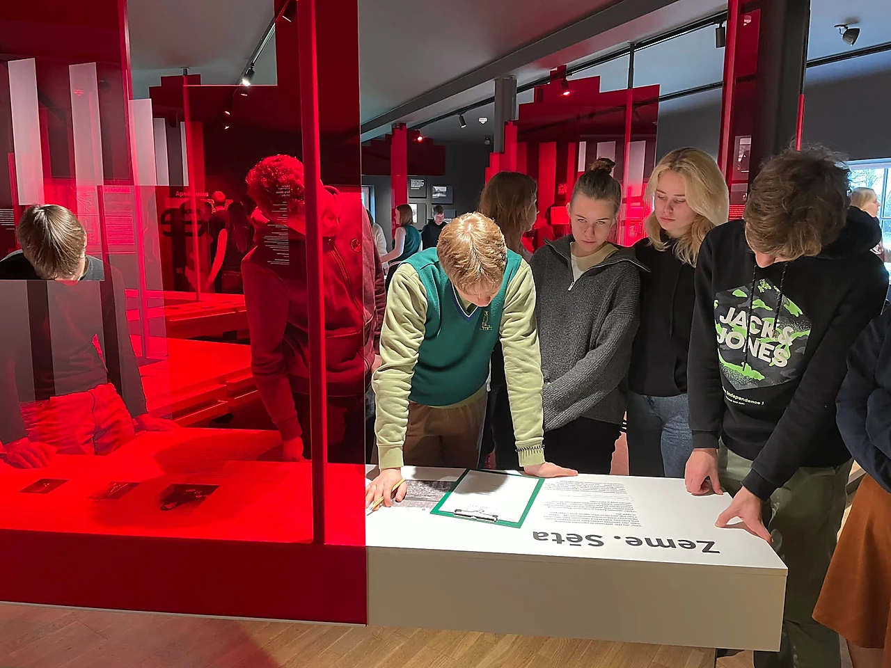 Muzeja gides I.Ķipsnes patriotiskais stāstījums par vēstures zīmēm, notikumiem un līkločiem Latvijā neatstāja vienaldzīgu nevienu. Katram bija iespēja aizdomāties par šodienu, sevi, savu dzimtu, par tiem, kas cīnījās un izcīnīja brīvību. Skolēni iepazinās ar jauno un moderno muzeja ekspozīciju, kas atklāta 2023. gada janvārī, veica izzinošus un pētnieciskus uzdevumus grupās un prezentēja savu veikumu.