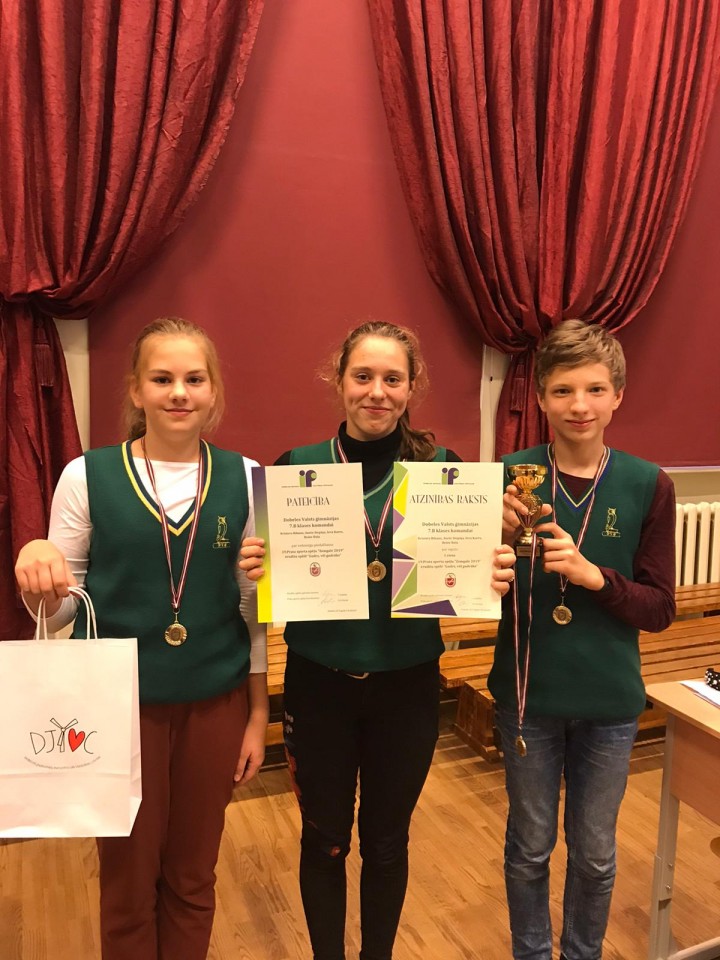 Finālā uzvarētāju titulu ieguva 7.B klases komanda “Četras debespuses” – Kristers Rikuns, Anete Stepiņa, Ieva Karro un Beāte Bula. 2. vietā ierindojās 8.A klases erudīti “Grudi vēl grudāki” – Henrijs Koleda, Enriks Birze, Robins Semjonovs un Filips Freimanis.