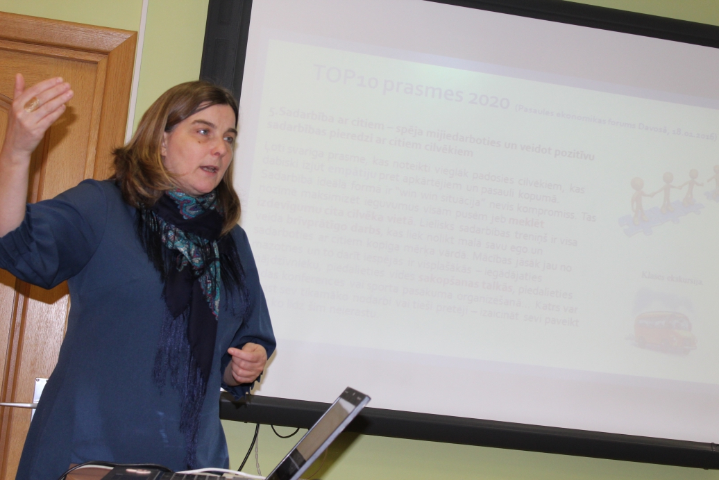 Lektore, karjeras konsultante Līga Damberga un klausītājas kursos "21.gs. prasmes izglītībā".