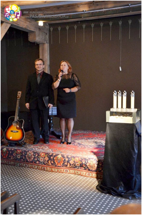 Jauniešu radošo darbu apbalvošanas ceremonijas vadītāji Normunds Dzintars (Latviešu valodas un literatūras skolotāju asociācijas pārstāvis) un Sandra Vensko (rakstniece) Krasta laudis 2012