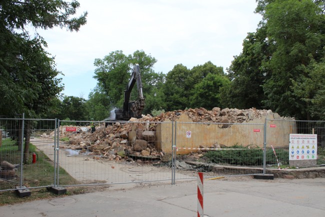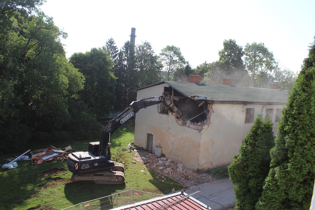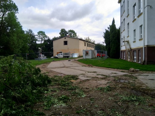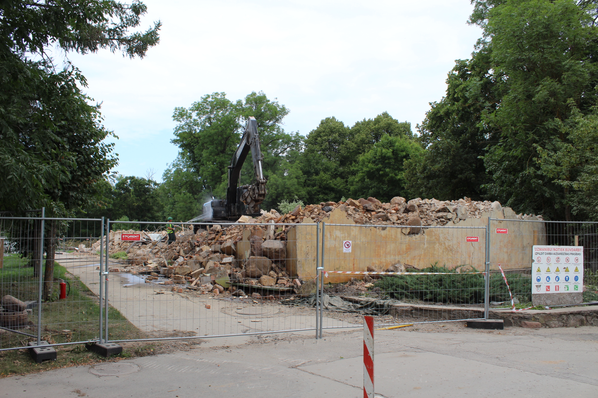 Šajās nedēļās būvobjektā sākās teritorijas sagatavošanas darbi, tostarp veco koku izzāģēšana un kādreizējās skolas ēkas, kas savulaik tika izmantota arī kā internāts, bet jau ilgāku laiku bija avārijas stāvoklī, nojaukšana.