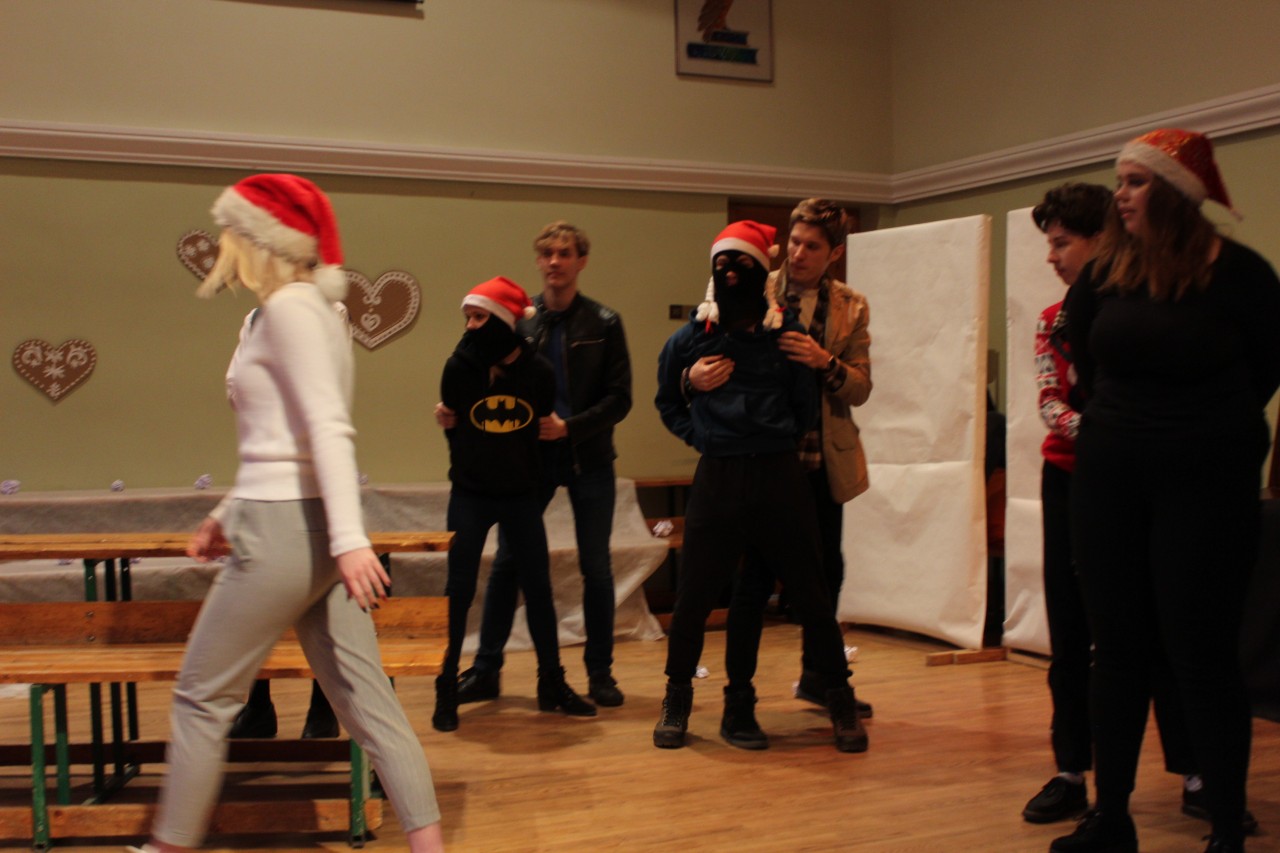 11. klašu skolēni tradicionāli gatavo Ziemassvētku iestudējumus, ar ko iepriecināt skolasbiedrus. Katrreiz tie pārsteidz un iepriecina ar jauniešu izdomu, radošumu un atraktivitāti, un arī 2019. gada izskaņa nebija izņēmums. 11.A1 klase pēc Elizabetes Treilības scenārija izrādīja ķīlnieku krīzi Ziemassvētkos, iestudējumā izmantojot arī jaunākās datortehnoloģijas. 11.BK klases skolēni bija iestudējuši savas klasesbiedres Rūtas Stilves stāstu par Rūķa Aušuļa un viņa draugu piedzīvojumiem Ziemassvētkos. Savukārt internacionālu svētku svinēšanu ar dažādu tautu nacionālo iezīmju demonstrēšanu un jestrām dejām, ceļmalas viesnīcā satiekoties nejaušiem apmeklētājiem, pēc Mārtiņa Mārča Pavļukovska ieceres bija sarīkojuši 11.A2 klases skolēni.