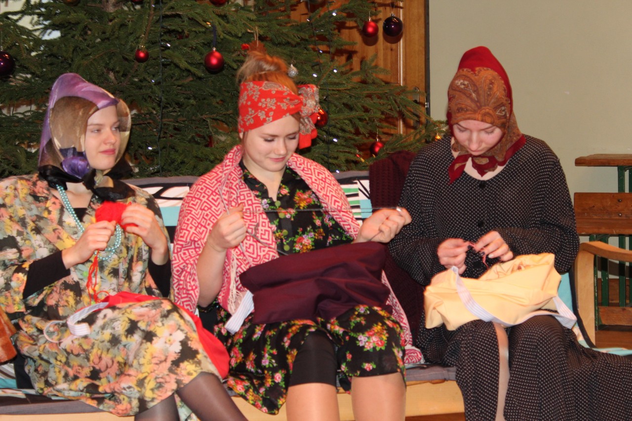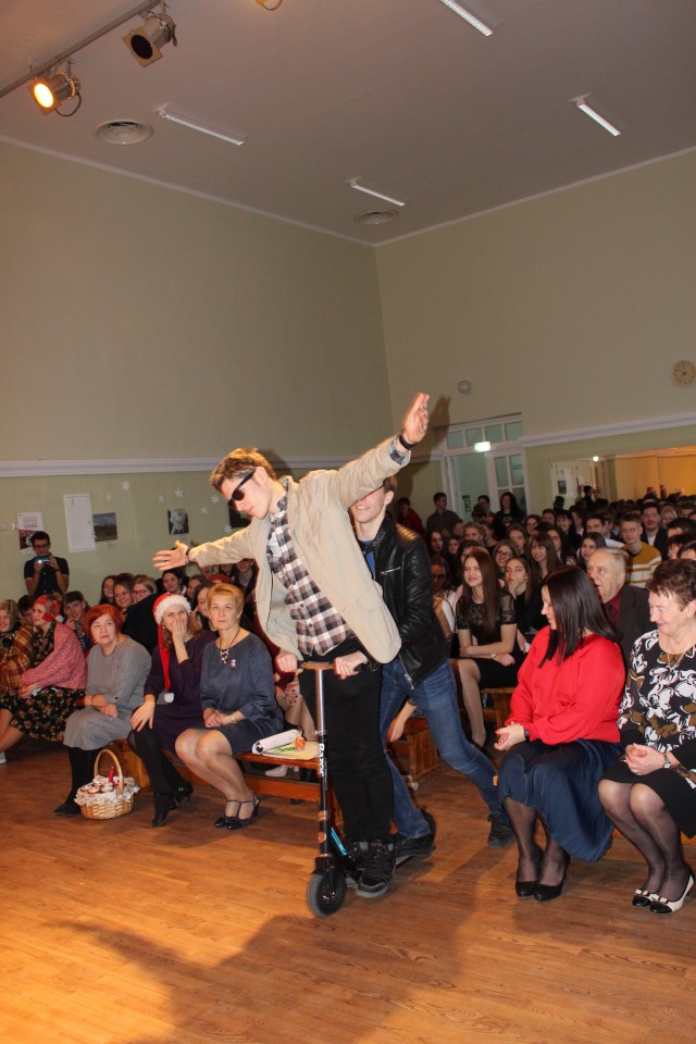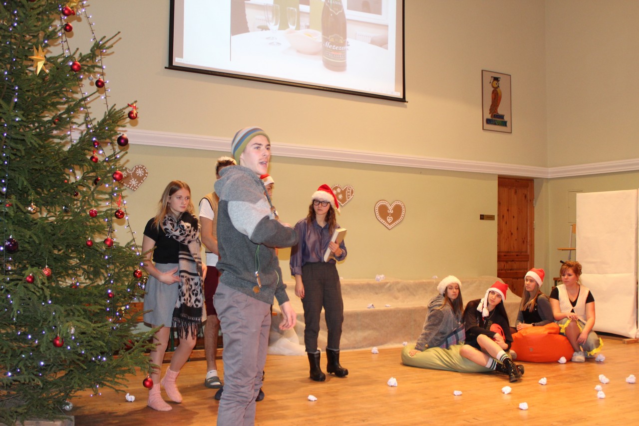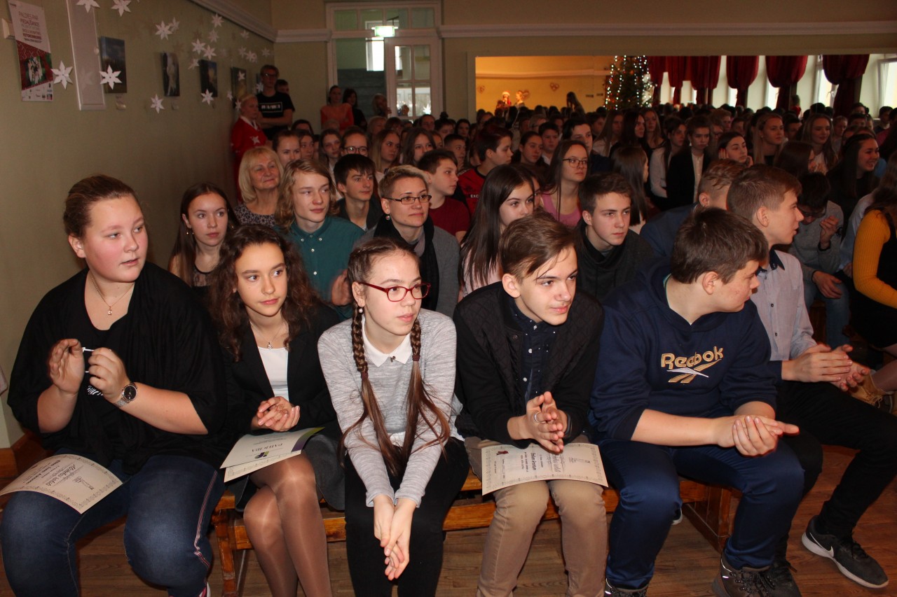 Ģimnāzijas direktore Inese Didže, uzrunājot skolēnus, mudināja viņus savās ģimenēs pārrunāt svētku tradīcijas, atminēties, kā svētki svinēti katrā saimē agrāk un kā tas notiek šolaik, - ar vēlmi samīļot citam citu, pateikt paldies, pasapņot par nākotni, padomāt par savām Ziemassvētku apņemšanām, kā rīkoties labāk, paveikt vairāk, lai mums pašiem par to būtu prieks.