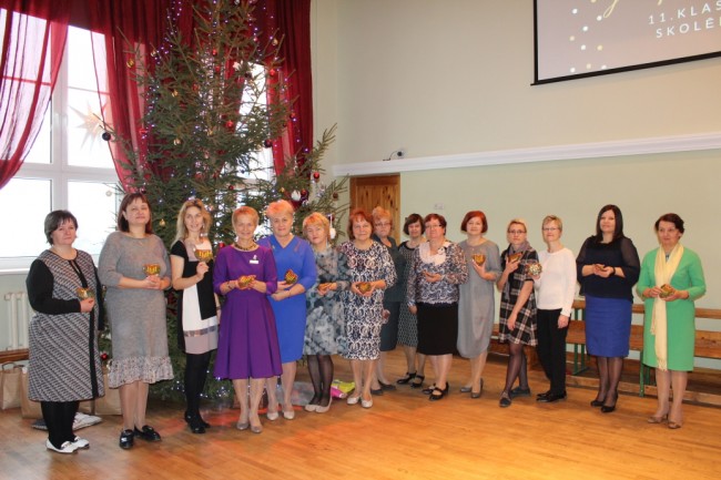 Pie svētku egles - arī skolotāji un darbinieki.