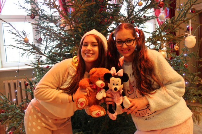 Pasākumus vadīja Rūķu meitenes Simona Mežgale (no labās) un Līva Veidemane, kura bija arī "Ziemassvētku jampadrača" scenārija autore un režisore. Par to Līvai īpašu paldies sacīja direktore.
