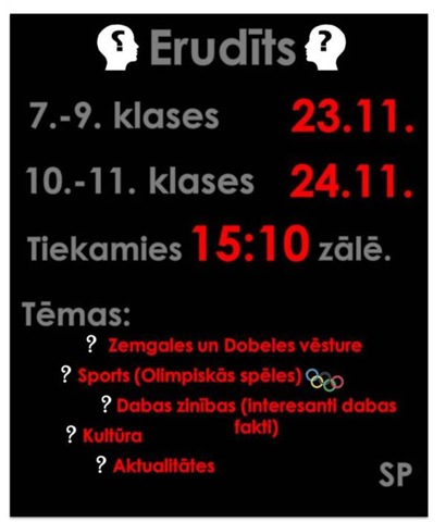 Skolā norisināsies kārtējais skolas pasākums "Erudīts" 21.11.2011Drukāt Jautājumi, komentāri par rakstu Pievienot