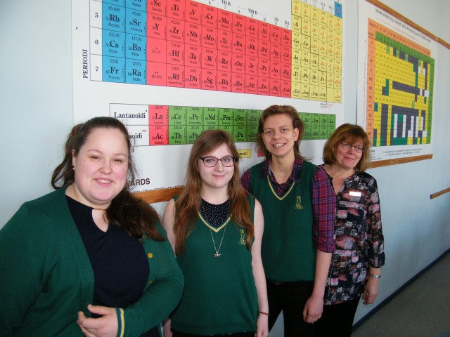 Šogad esam godam pārstāvējuši savu skolu Atklātajā ķīmijas olimpiādē. Beāte Cehanoviča no 8.a klases ieguva pirmo vietu astoto klašu grupā, 10.a1 klases skolnieces Guna Una Jāzepa 2.vietu un Ieva Annija Eihmane 3.vietu 10.klašu grupā. Attēlā laureātes.