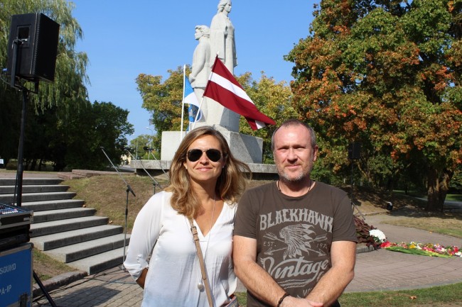 Viesiem ļoti patika Ziedu paklāja veidošana pie Dobeles Atbrīvošanas pieminekļa.