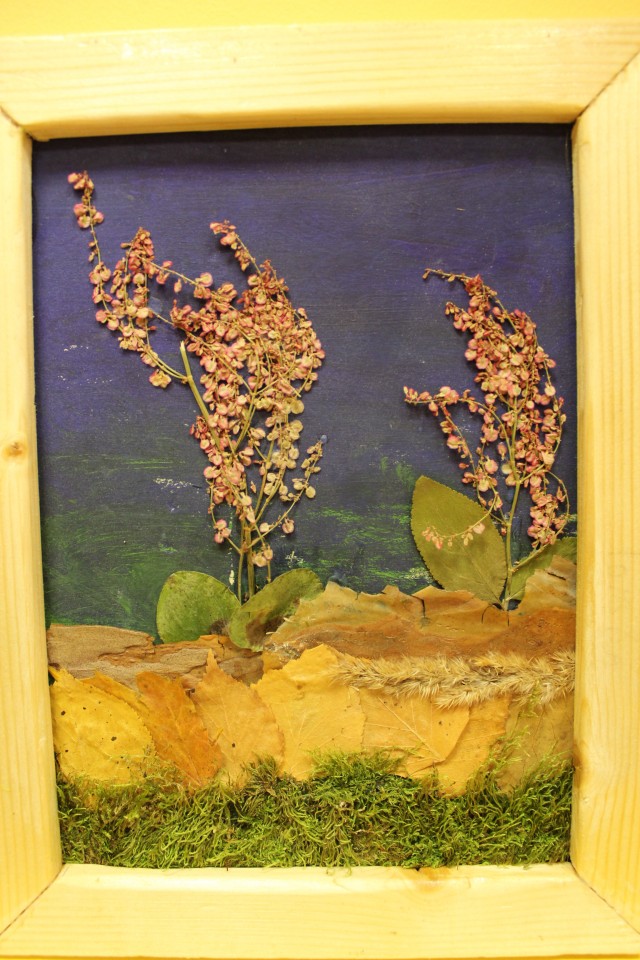 - Sākotnēji skolēni zīmē telpu ainavā – ar domu izprast, kā mainās krāsa priekšplānā un tālumā, kā samazinās vai palielinās objekti. Viņi zīmē ainavu, ar domu, ka tā tālāk parādīta līdzīgā kompozīcijā ar dabas materiāliem, - skaidroja Inga Ozoliņa. – Šos zīmējumus esmu atdevusi skolēniem, tāpēc tagad ir grūti spriest, kas no apgūtā ir īstenojies šajās glezniņās, jo nav iespējams salīdzināt ar iepriekšējiem darbiem, - atzina Inga Ozoliņa, bilstot, ka tomēr var vērtēt, vai vizuālajā mākslā dzirdētais ir izmantots. – Var redzēt, ka daži autori ir domājuši, lai glezniņā būtu jaušams telpiskums, lai tā nebūtu “plakana”. Un jauki arī, ka zēni aprakstījuši savu ideju. Tas ir svarīgi, ka skolēns prot izstāstīt, uzrakstīt par to, ko gribējis darbā attēlot.