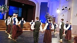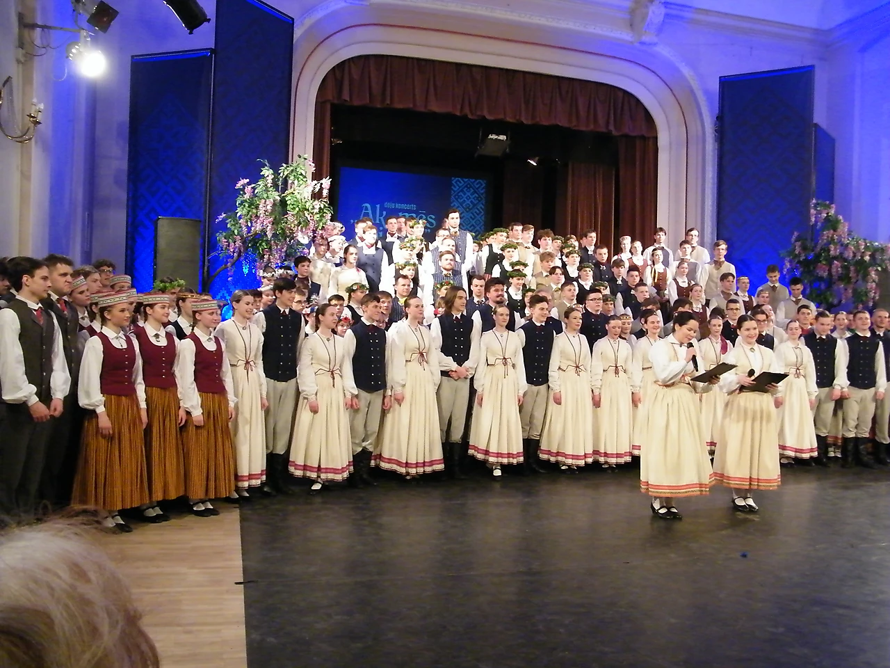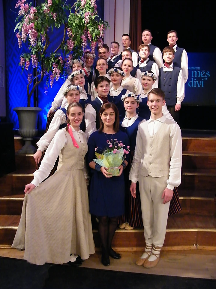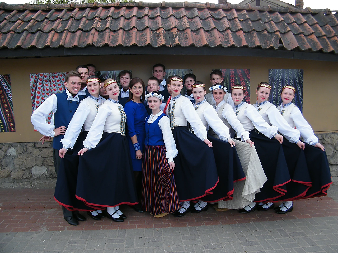 Pēc tam sākās īstā rosība. Ģērbtuvē uzmanīgi tika uzvilkti tērpi, meitenes viena otrai sapina bizes, puiši palīdzēja sasiet lakatiņus. Drīz vien sākās koncerts un sākās manāms satraukums, tāpēc vienojāmies kopīgā kolektīva tradīcijā- saucot mūsu saukli: “Kas tur soļo, kas tur dzied-solis, solis dancot iet.” Tad jau pienāca arī laiks doties uz skatuves un dejotu mūsu skaistās dejas- “Parādies, Tu saulīte”, “Cūkas driķos” un “Sudmaliņas”.
