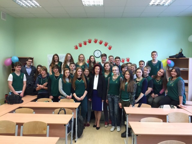 Solvita Āboltiņa klasei pastāstīja par saviem skolas un studiju gadiem, par pieredzi dažādās politikas jomās, par to, kā viņa nokļuva līdz Saeimai un par savu aizņemto darbadienu.