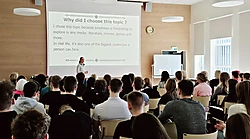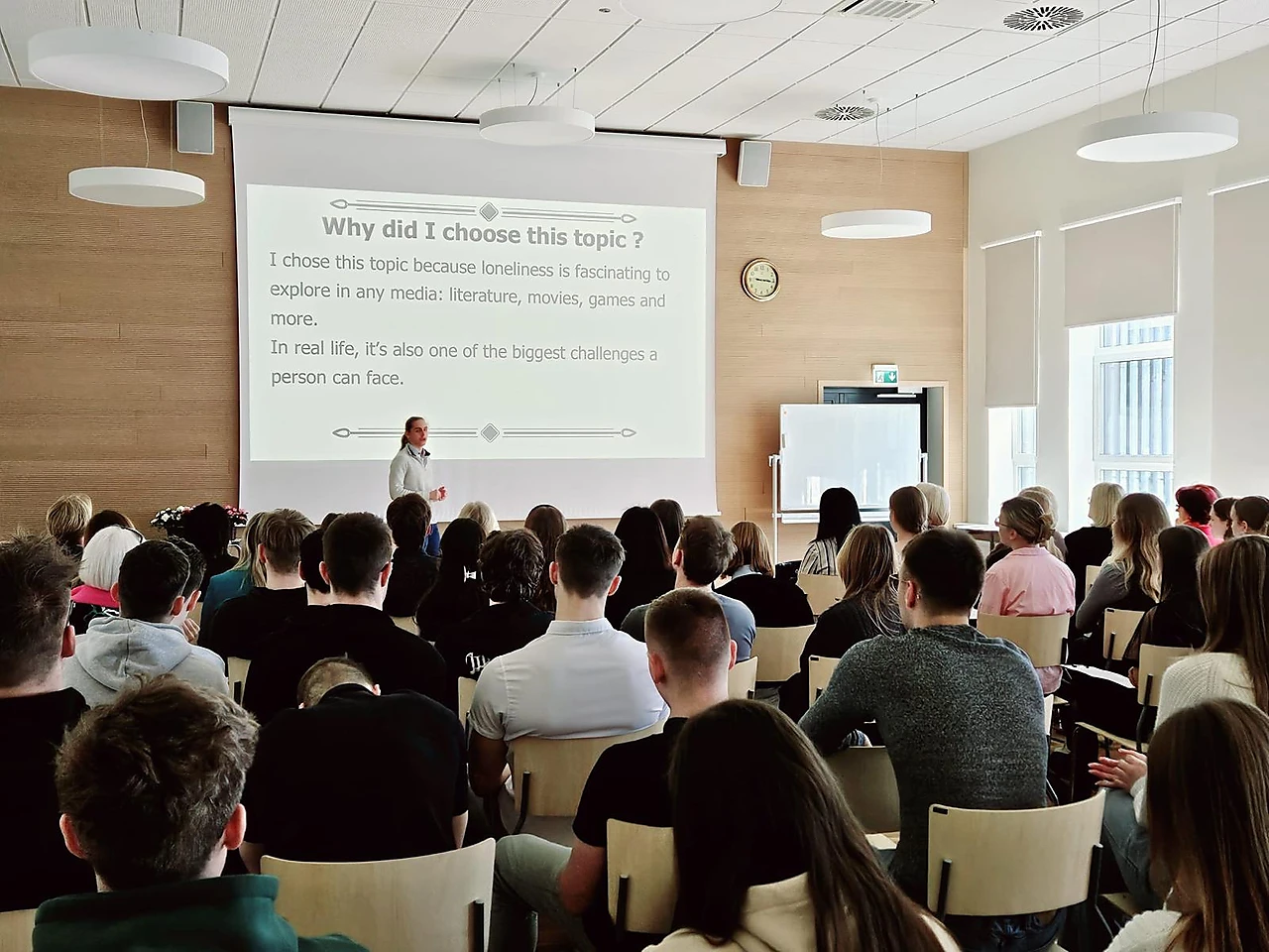 Konferences pirmā daļa tika veltīta 12. klašu padziļināto kursu skolēnu prezentācijām par dažādiem aktuāliem un izglītojošiem tematiem. Skolēni analizēja plašu jautājumu loku – no ķermeņa tēla un pašvērtējuma nozīmes līdz Džordža Orvela 1984 brīdinājumiem par totalitārismu un sabiedrības kontroli. Starp izceltajiem tematiem bija arī Doriana Greja portreta simboliskā saikne ar mūsdienu tehnoloģiju izmantošanu, kā arī viktoriāņu Londonas attēlojums Artūra Konana Doila darbā A Study in Scarlet un tā nozīme literārajā kontekstā. Šīs prezentācijas apliecināja skolēnu spēju veikt padziļinātu izpēti un argumentēti paust savus secinājumus angļu valodā.