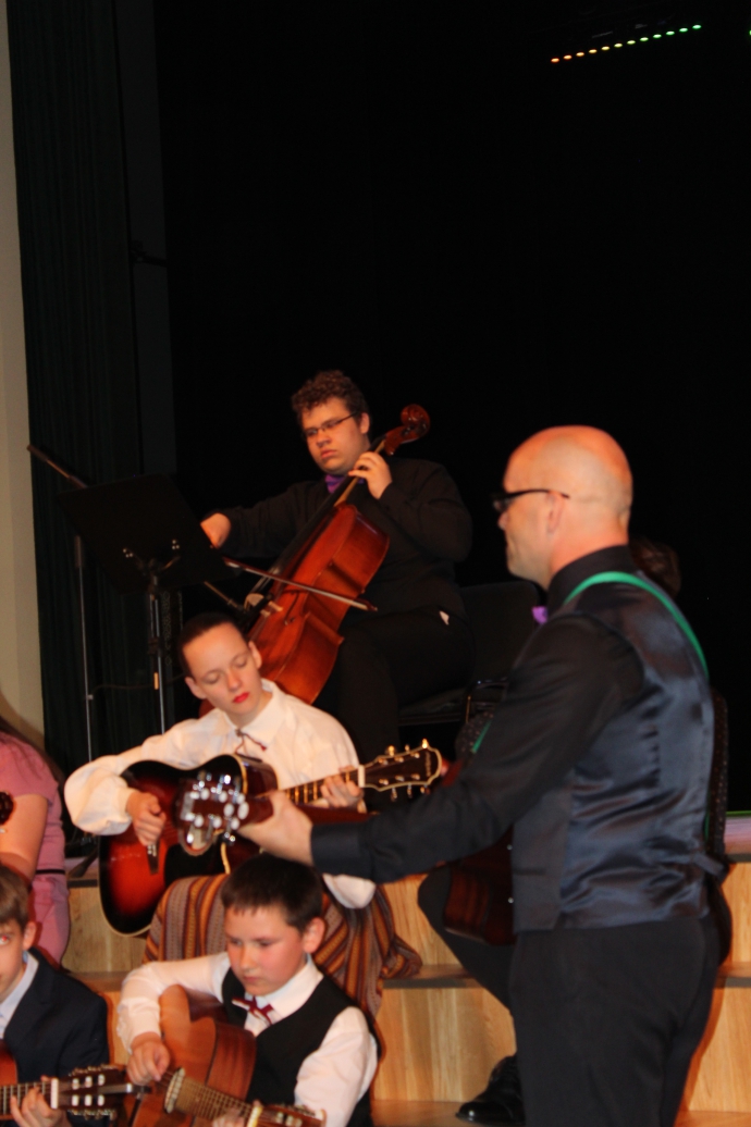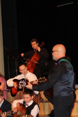 Muzicē ģitāristu ansamblis un jaunais čellists Roberts Udalovs.