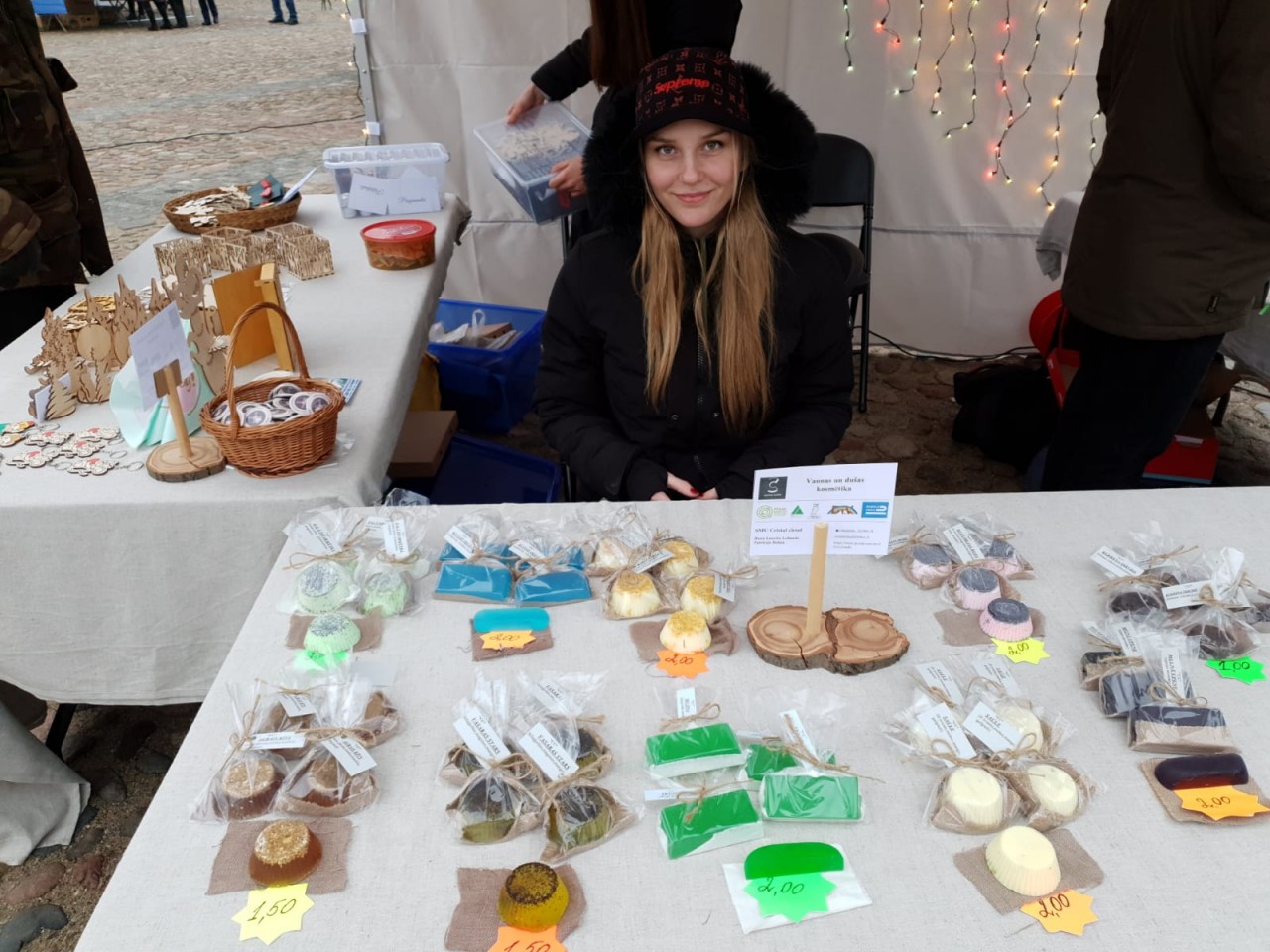 Dobeles Valsts ģimnāzijas 10. klašu meitenes Patrīcija Delāta un Dana Laurita Leilande ražo un piedāvā vannas un dušas kosmētiku - paštaisītas ziepes un skrubjus.