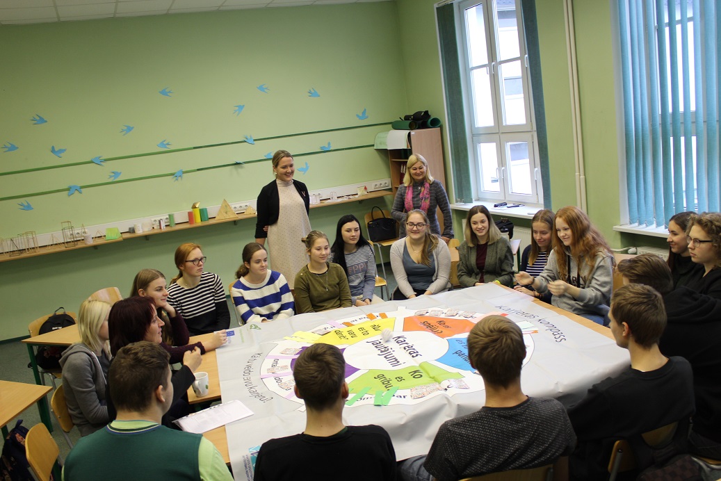 Projekta Nr.8.3.5.0/16/I/001 "Karjeras atbalsts izglītojamiem vispārējās un profesionālās izglītības iestādēs" ietvaros Dobeles Valsts ģimnāzijā turpinās Karjeras attīstības atbalsta pasākumi, kuros ģimnāzisti tiekas ar karjeras konsultanti un grupu treneri, Dr.Sc.admin., Mg.Psych, Vidzemes Augstskolas docenti, SIA Amber Puzzle vadītāju Agitu Šmitiņu.
