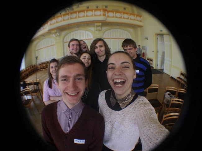 Liepājas Valsts 1. Ģimnāzijas Skolēnu pašpārvalde mūs laipni sagaidīja, un mēs devāmies uz reģistrāciju. Tika izdalītas dažādu krāsu vārdu lapas, pēc kurām vēlāk dalīja komandās. Saliedēšanās pasākumā no papīra vajadzēja izveidot lidmašīnu ar savu vārdu, tad tā bija jālidina centrā un jāpaņem jebkura cita lidmašīna. Tā katrs tika pie mikrofona un sasveicinājās ar cilvēku, kura lidmašīnu paņēma.