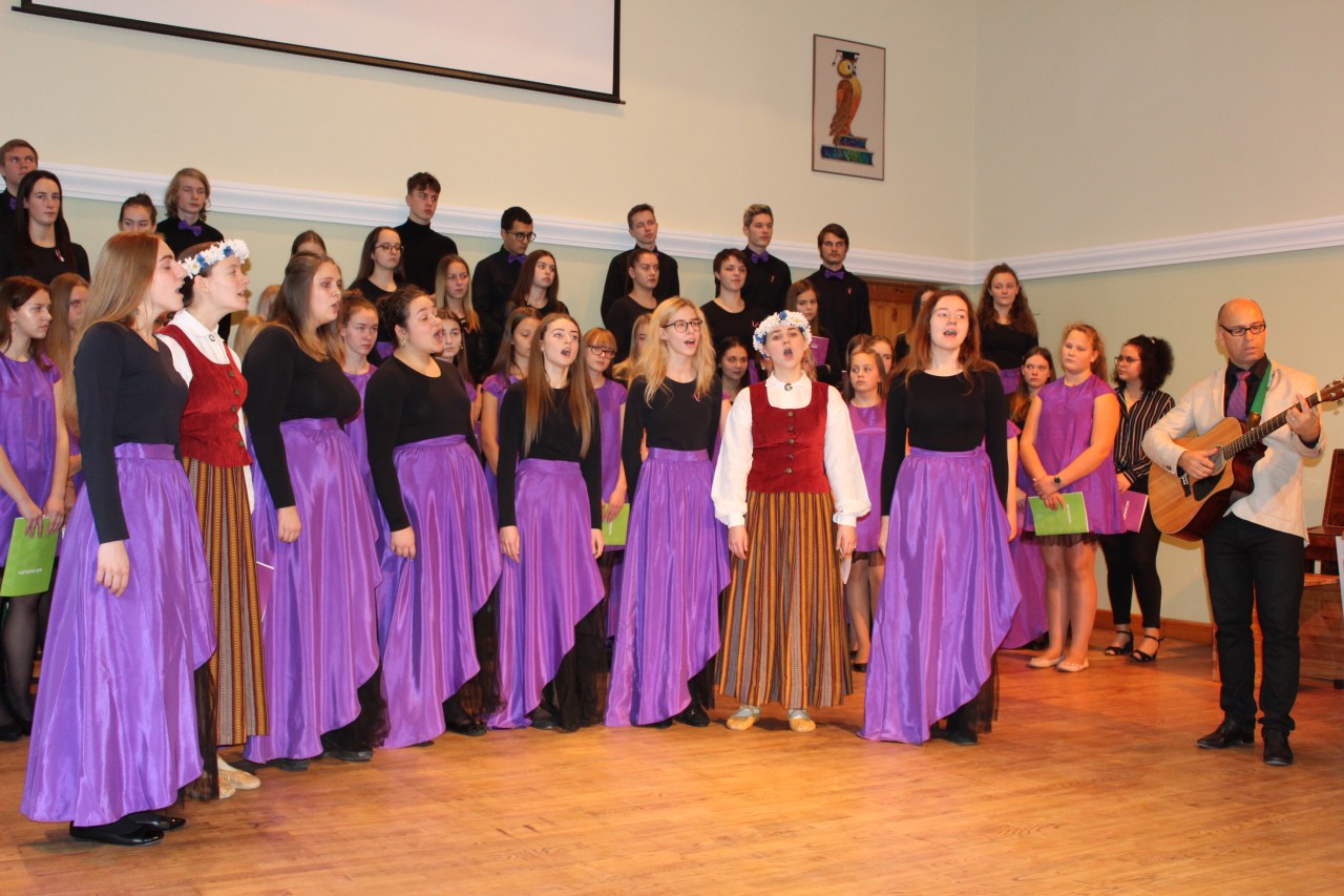 Svētku noskaņojumu radīja Raimonda Bulmera vadīto koru un ansambļu izpildītās dziesmas par karogu, par jauniešiem, kuri devušies svešatnē, par ģimenes vērtībām, kulminācija bija 10. – 12. klašu grupai sniegtā koncerta izskaņā dziedātā “Saule, pērkons, Daugava”. Kārtējoreiz iepriecināja Ligitas Urbeles vadītā vecāko klašu deju kolektīva “Solis” sniegums.