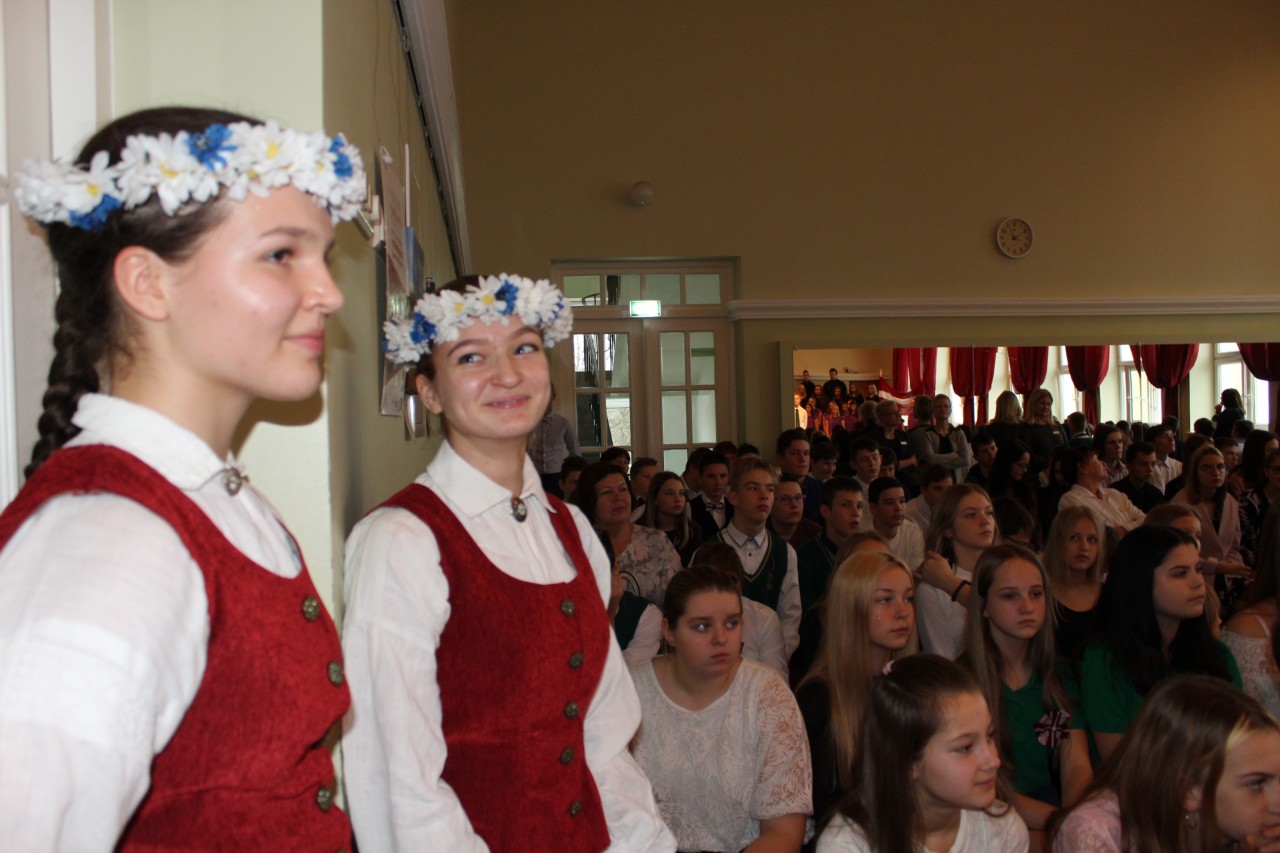 Direktores vietniece Kristīne Pakule aicināja skolēnus atcerēties par cilvēkiem, kuri atdeva dzīvības, lai mums šodien būtu mūsu valsts. Viņa arī mudināja skolēnus ne tikai iestāties ģimnāzijā, lai tajā būtu, bet arī iesaistīties skolas interešu pulciņos un kolektīvos, skolas aktivitātēs, lai katrs būtu kā neatņemama daļiņa ģimnāzijas kopējā, lielajā “bildē”.
