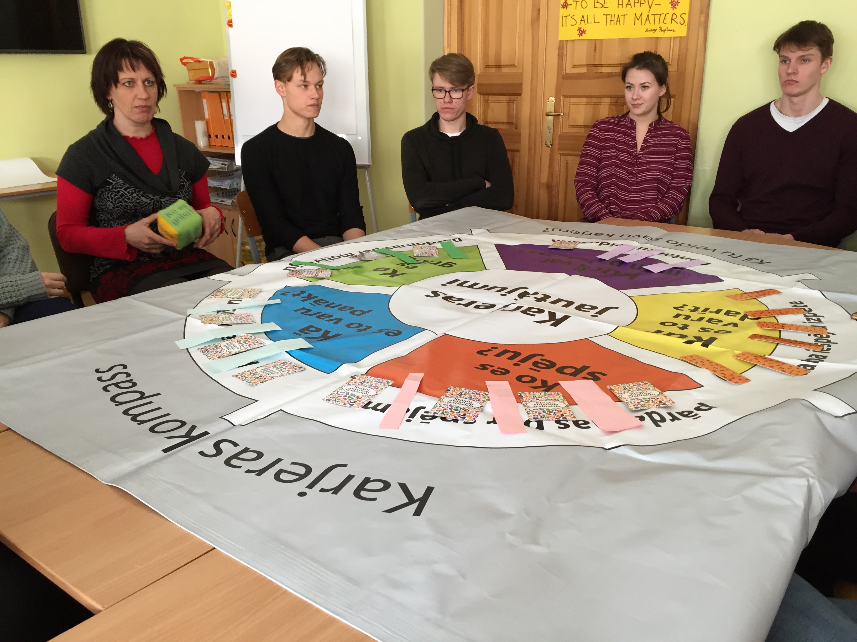 Lai pieņemtu pārdomātus karjeras lēmumus, svarīgi izprast piecas galvenās karjeras kompetences. Izmantojot spēli "Karjeras Paklājs", vidusskolēni pārrunāja aktuālos katras kompetences jautājumus. Nodarbībā " Iegriez savu karjeras kompasu!" 12.A1 klases audzēkņi kopā ar klases audzinātāju Gitu Ziemeli-Trubaču un 12.BK izglītojamie aplūkoja karjeras jautājumus no dažādiem skatupunktiem. Karjeras kompasā būtiskie karjeras jautājumi ir formulēti atbilstoši piecām karjeras kompetencēm, kas ietver pārdomas par motivāciju, pārdomas par spējām un īpašībām, darba iespēju izpēti, karjeras virzības noteikšanu, kontaktu loka paplašināšanu. Skolēni attīstīja savas prasmes aktīvajā klausīšanās, sarunas vadīšanā, jautājumu uzdošanā atbilstoši karjeras kompetenču lokam.