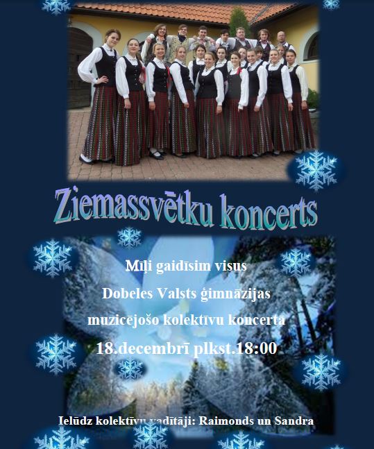 Ziemassvētku koncerts Dobeles Valsts ģimnāzijā 15.12.2014Drukāt atpakaļ Jautājumi, komentāri par rakstu Pievienot