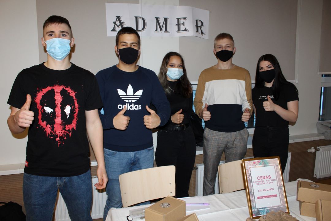 Ar pašu ražotu cepumu piedāvājumu izstādes apmeklētājus vilināja uzņēmums “ADMER”. Nosaukums veidots no dalībnieku vārdu pirmajiem burtiem. 11.U klases skolēni Matīss Sakāns, Anete Kristiāna Jēkabsone, Dāvids Kāpostiņš, Elīza Rasiņa un Roberts Niklāvs Zīverts pastāstīja, ka uzņēmums izgatavo veselīgus pārtikas batoniņus no auzu pārslām, medus un riekstiem, pārklātus ar melno šokolādi.