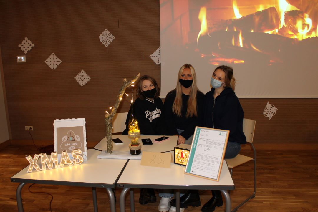 Produktu “Dzīvā” lampa” izgatavojušas 11.U klases skolnieces Lita Biernāne, Līva Emīlija Kursīte un Paula Šķupele. Jaunietes pastāstīja, ka ir izgatavojušas dabai draudzīgu lampu, kas izmantojama gan iekštelpās, gan laukā. To veido koka pamatne un statīvs, un izgaismota stikla pudele. Ideja radusies, mācību priekšmetā “dizains un tehnoloģijas” darinot ko līdzīgu.