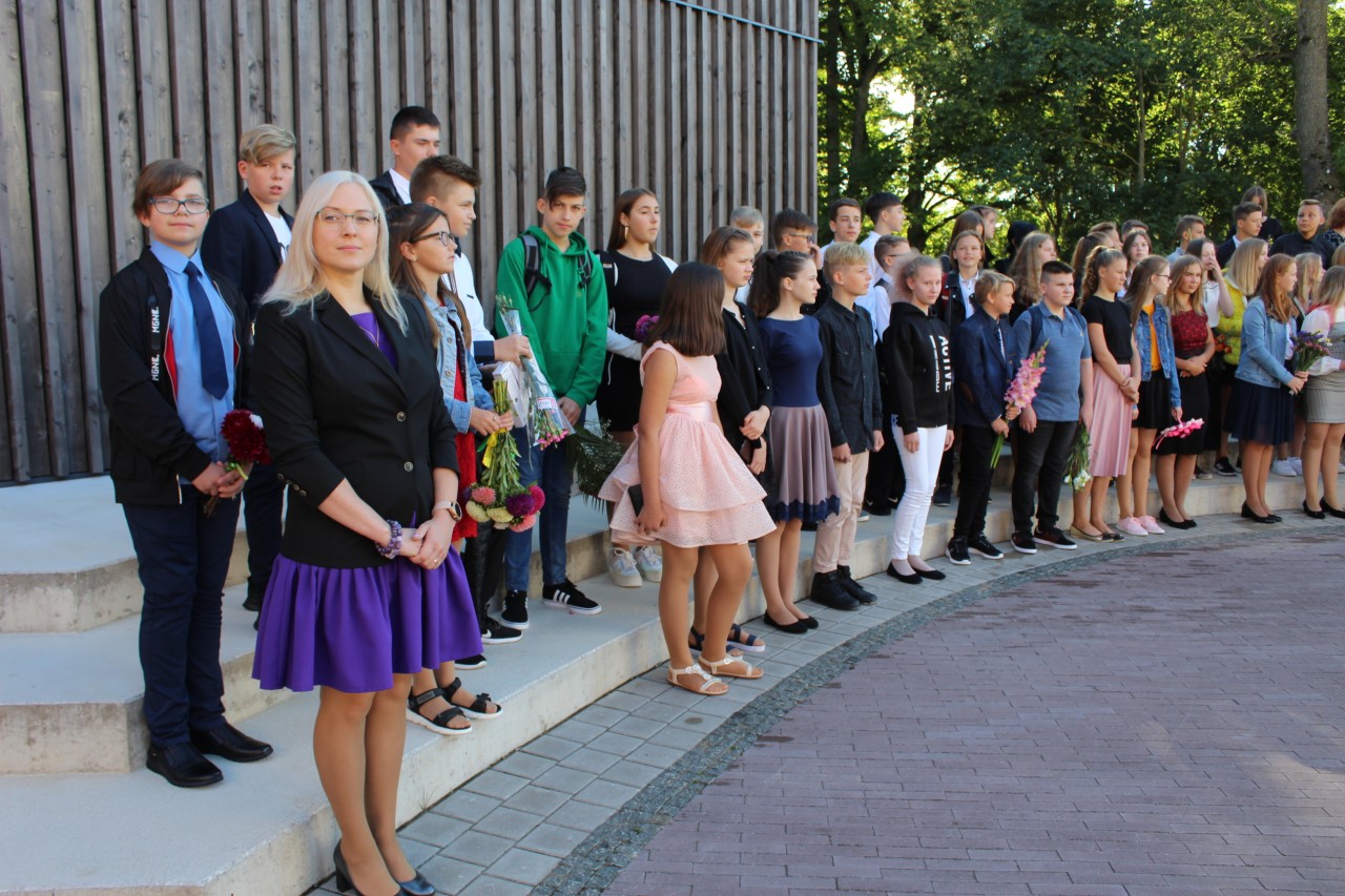 Dabaszinātņu mācību centra pagalmā ar aplausiem sveica jaunos skolēnus: 7.A klasi ar audzinātāju Signi Kukari, 7.B klasi, kuru audzinās Marīte Barakauskaite, kā arī četras 10. klases, kas, atbilstoši jaunajai kompetenču pieejai izglītības procesā, tagad ieguvušas jaunus novirzienus. I (inženierzinātņu) un 10.K (kultūras un mākslas virziena) klasi audzinās Aija Prokopova. 10.U (uzņēmējdarbības un ekonomikas virziena) klases audzinātāja ir Ligita Urbele. 10.V (vides un veselības virziena) klasi audzinās Gunta Pelnēna.