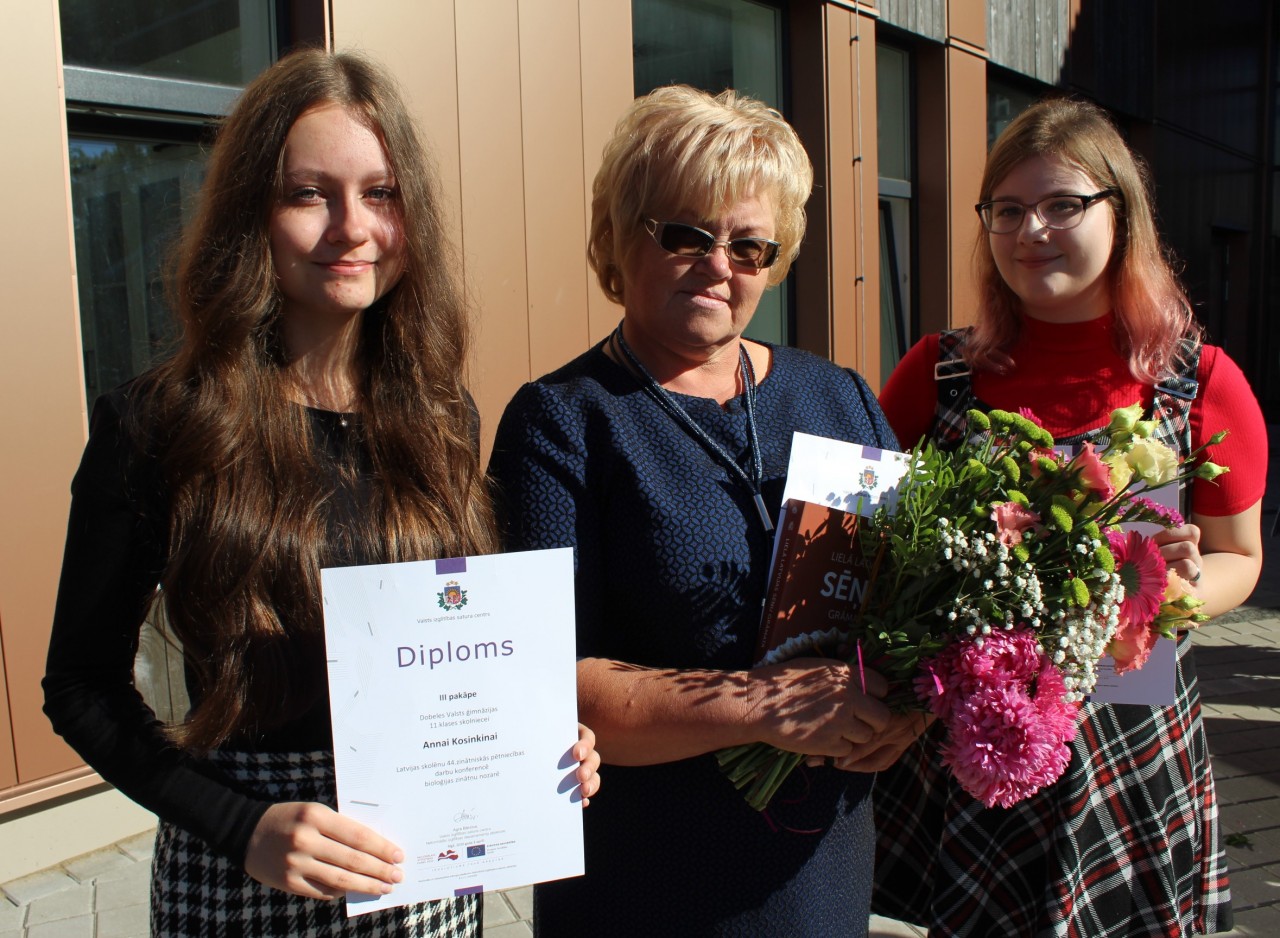 Tā kā iepriekšējā mācību gada noslēgumā COVID-19 pandēmijas dēļ nenotika tradicionālais ikgadējais mācību priekšmetu olimpiāžu veiksminieku un viņu skolotāju kopīgais apbalvošanas sarīkojums, Aija Didrihsone pasniedza īpašus apbalvojumus. Par panākumiem Latvijas skolēnu 44. Zinātniski pētniecisko darbu konferencē bioloģijas zinātņu nozarē Valsts izglītības satura centra 2. pakāpes diplomu saņēma nu jau 12. klases skolniece Beāte Cehanoviča, 3. pakāpes diplomu - 12. klases skolniece Anna Kosinkina. Bioloģijas skolotāja, zinātniski pētniecisko darbu vadītāja Gita Heistere saņēma Valsts izglītības satura centra Atzinību par skolēnu intereses veicināšanu un atbalstu dalībai Latvijas skolēnu 44. Zinātniski pētniecisko darbu konferencē.