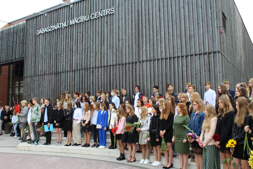 Zinību dienā, 1. septembrī, Dobeles Valsts ģimnāzijas saime pulcējās Dabaszinātņu mācību centra pagalmā, lai kopīgi priecātos par jaunā mācību gada sākumu klātienē.