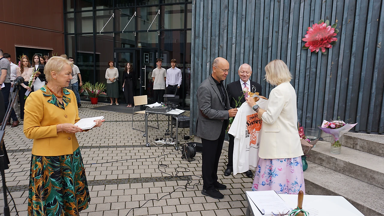 Ģimnāzijas saimei šogad pievienojušies sešdesmit seši 7. klašu skolēni un septiņdesmit deviņi 10. klašu skolēni, kā arī jaunie skolotāji Baiba Inauska un Emīls Grants. MOT komandai pievienojās Evija Eihmane un Gunta Freidenfelde. Mēs priecājamies, ka kopā ar mums šajā dienā bija arī Dobeles novada domes priekšsēdētājs Andrejs Spridzāns.